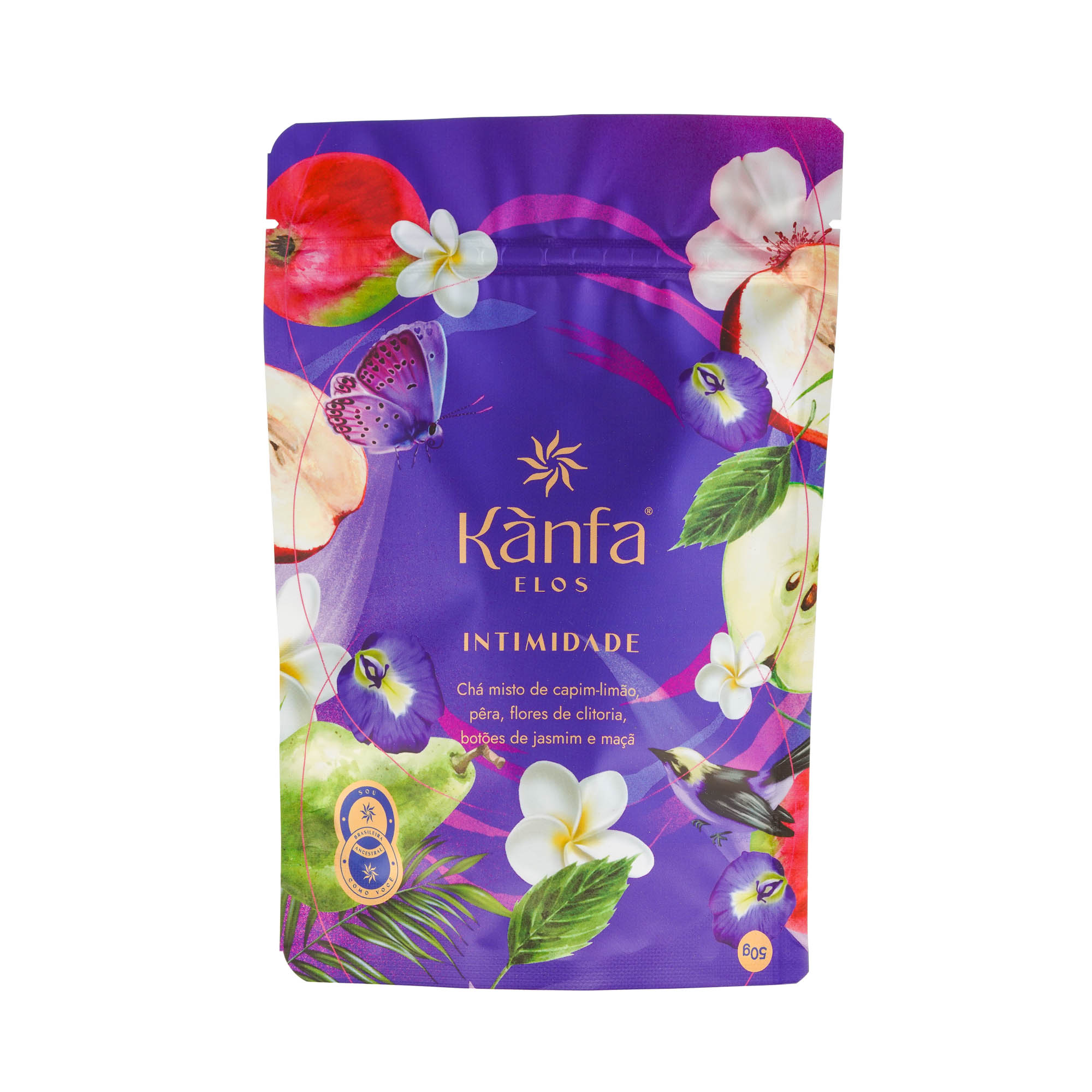 Este chá de capim-limão e clitória é um resgate da essência feminina, da representação da conexão entre mulher e natureza, com seus ciclos e consigo mesma. É uma exaltação ao sagrado feminino